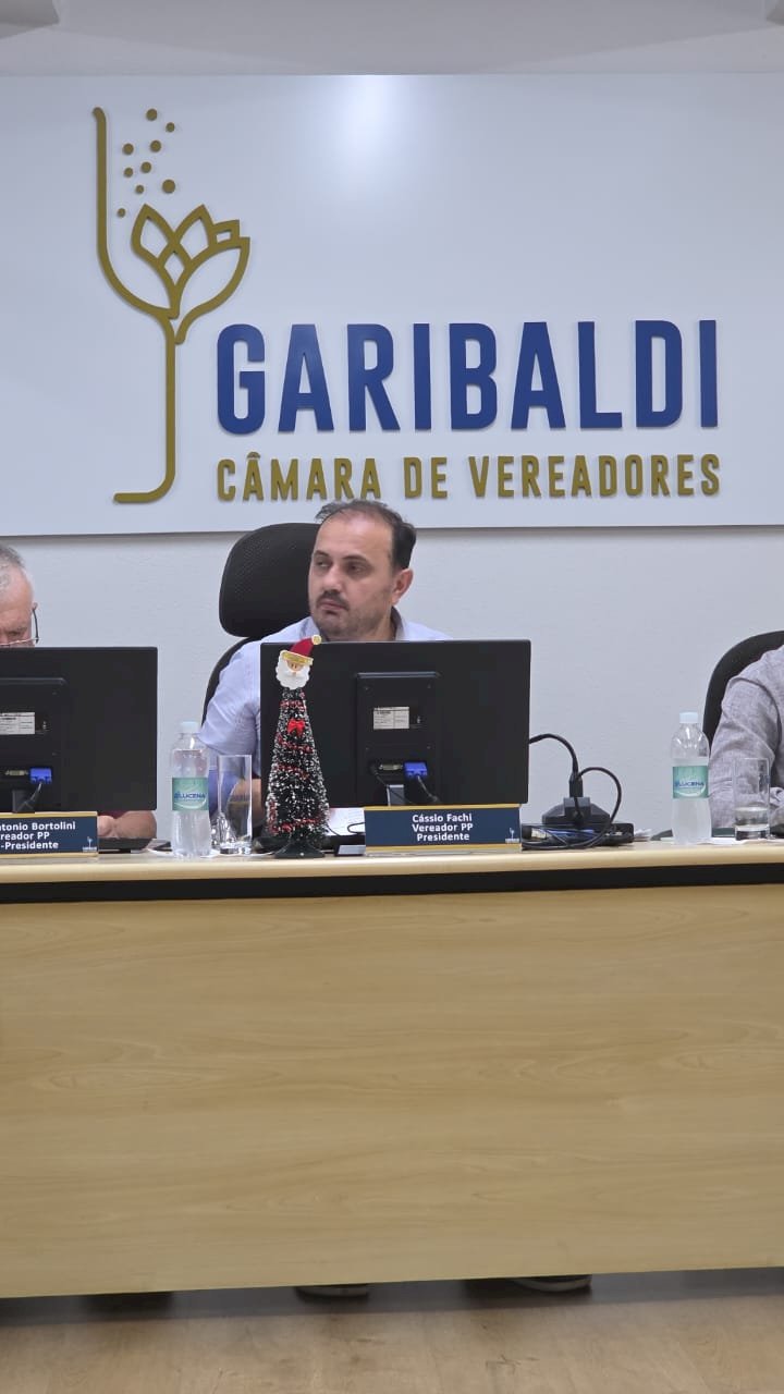 A Câmara de Vereadores de Garibaldi realizou, na quarta-feira, dia 17 de dezembro, uma Sessão Extraordinária para apreciação de matérias encaminhadas pelo Poder Executivo. A sessão ocorreu às 12h30, no Plenário da Câmara, sob a presidência do vereador Cássio Fachi, reunindo os parlamentares para a deliberação de projetos considerados relevantes para o município.